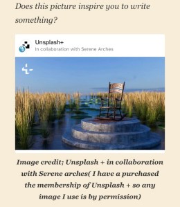 Her perfect dream of heaven suddenly appeared. Here she could rock forever, back and forth, weaving the past in her mind like a beautiful quilt of memories. Listening to nature was also a dream, after being in pain, in a colorless room, laying in a white sheeted bed, a long time, too long, and she dreamed of just this setting, and now here she was. Finally she was in a painless rest.