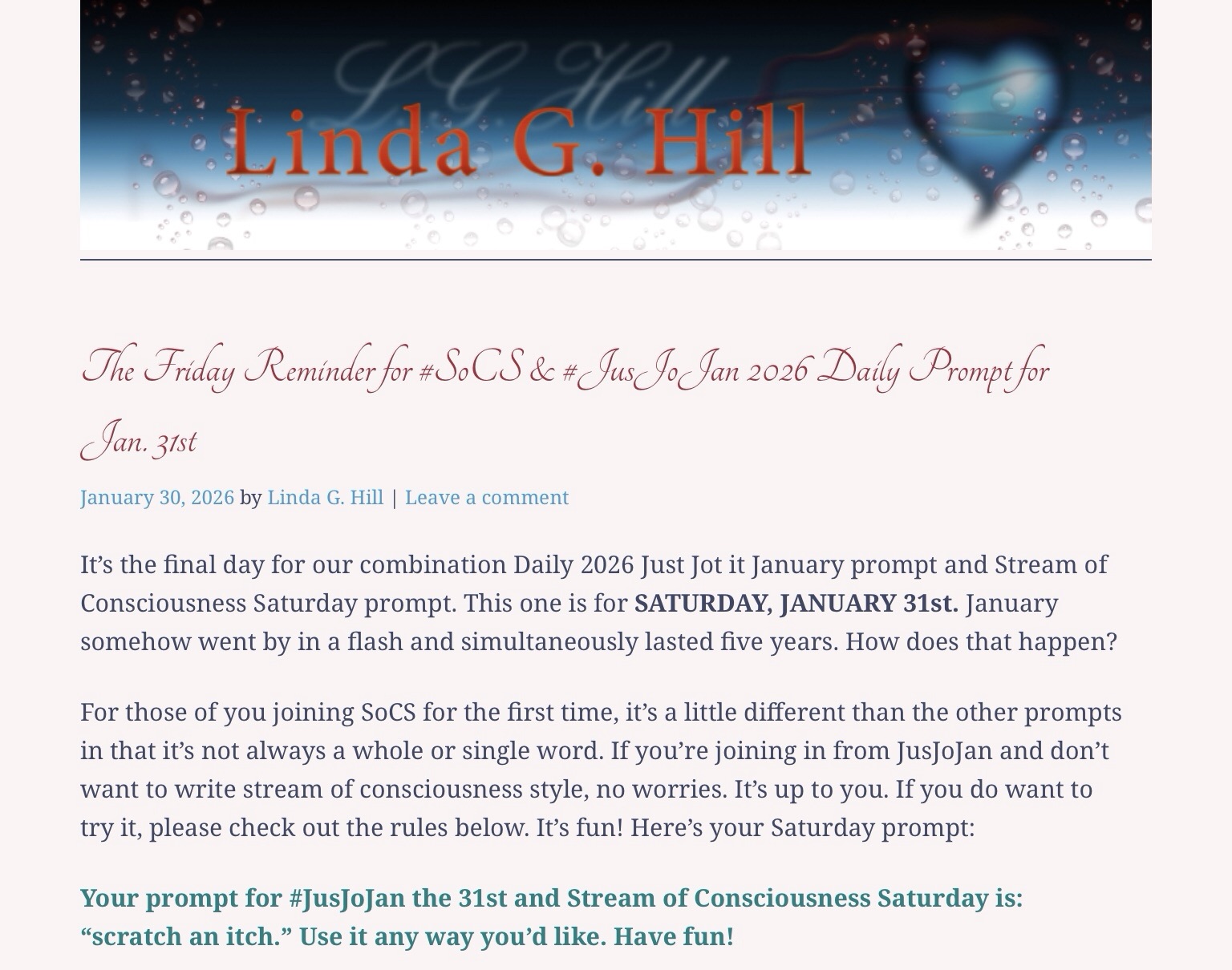 The Friday Reminder for #SoCS & #JusJoJan 2026 Daily Prompt for Jan. 31st