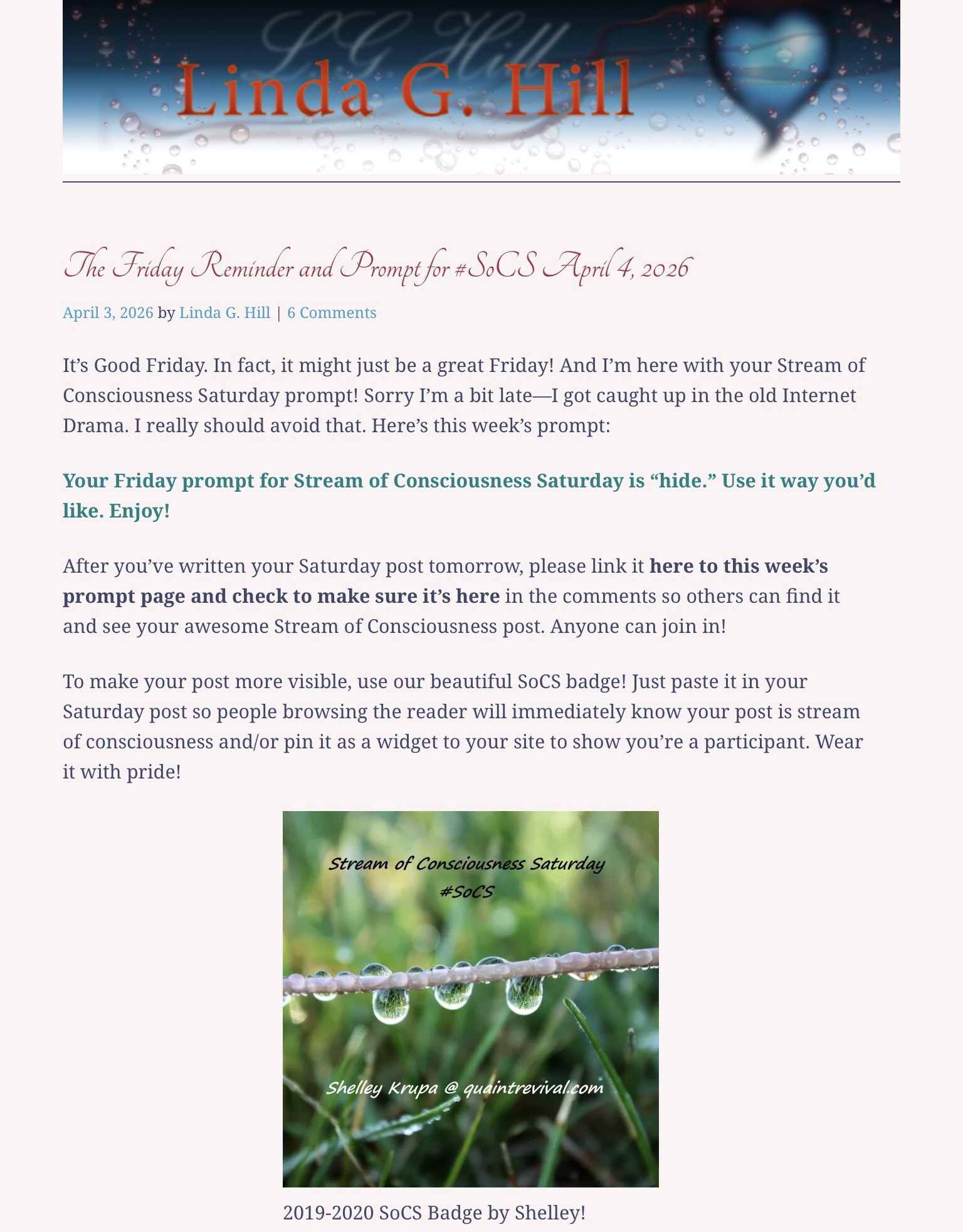 The Friday Reminder and Prompt for #SoCS April 4, 2026