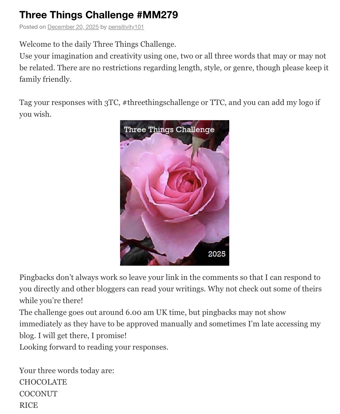 Three Things Challenge #MM279