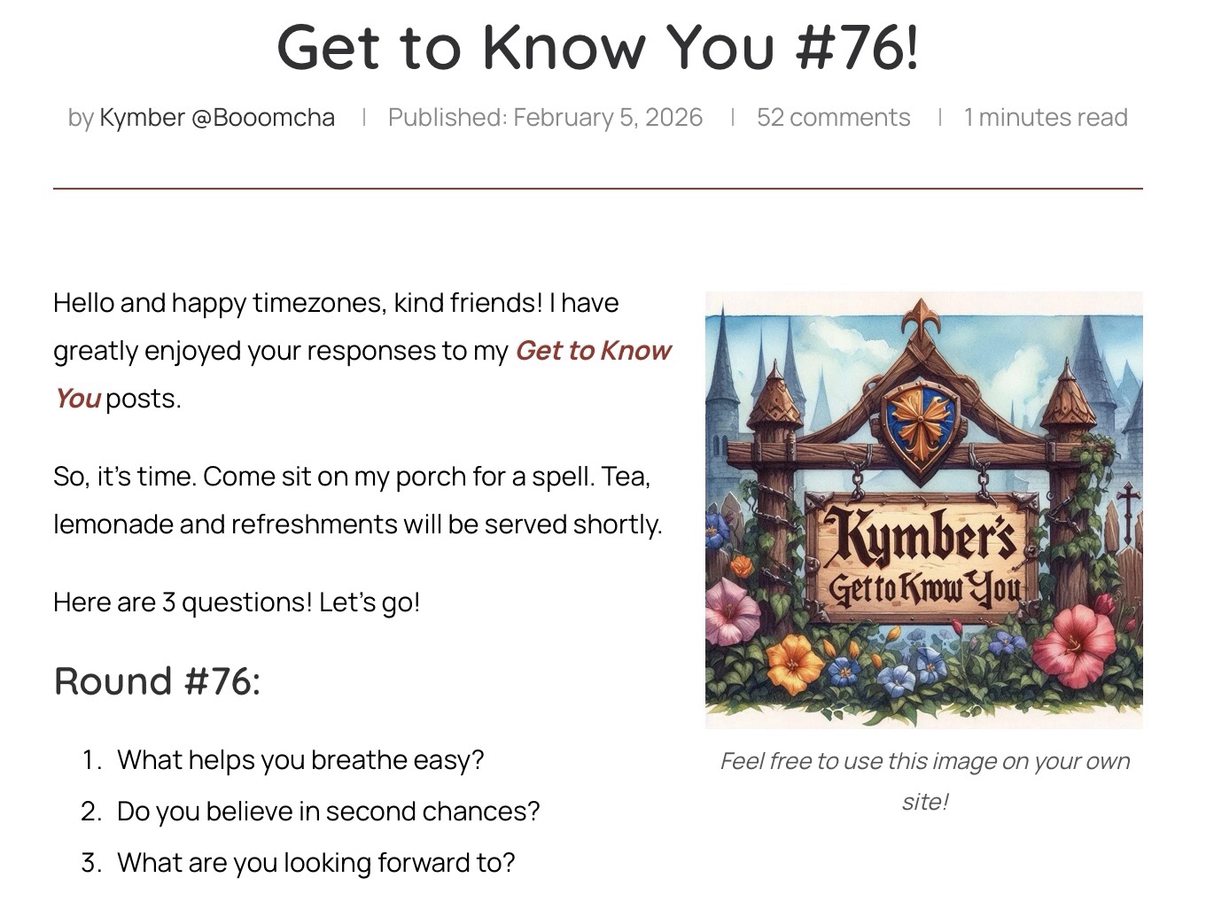 Get to Know You #76!