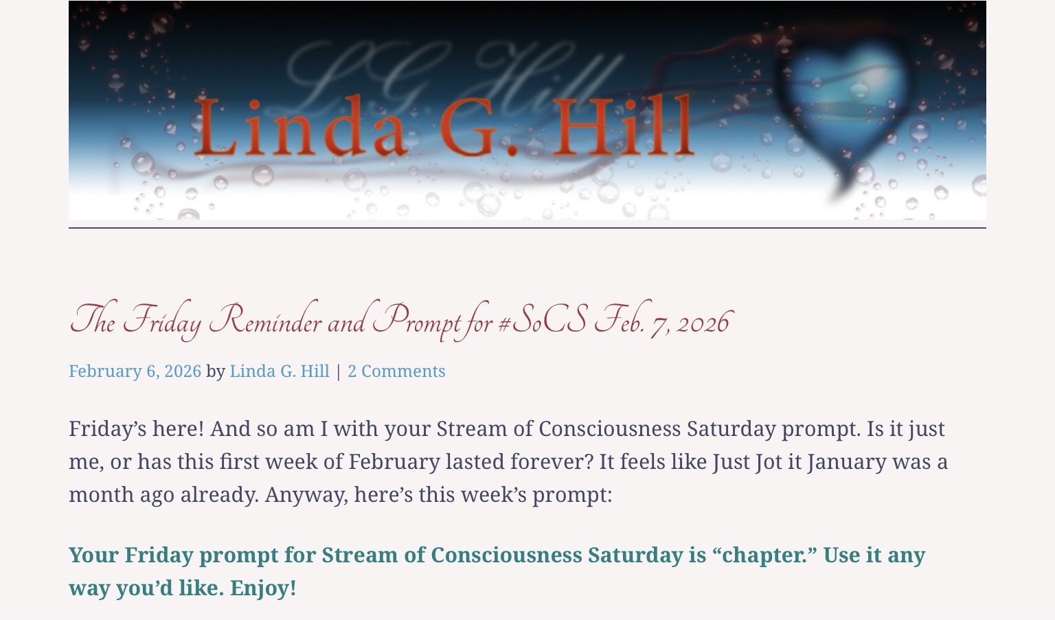 The Friday Reminder and Prompt for #SoCS Feb. 7, 2026