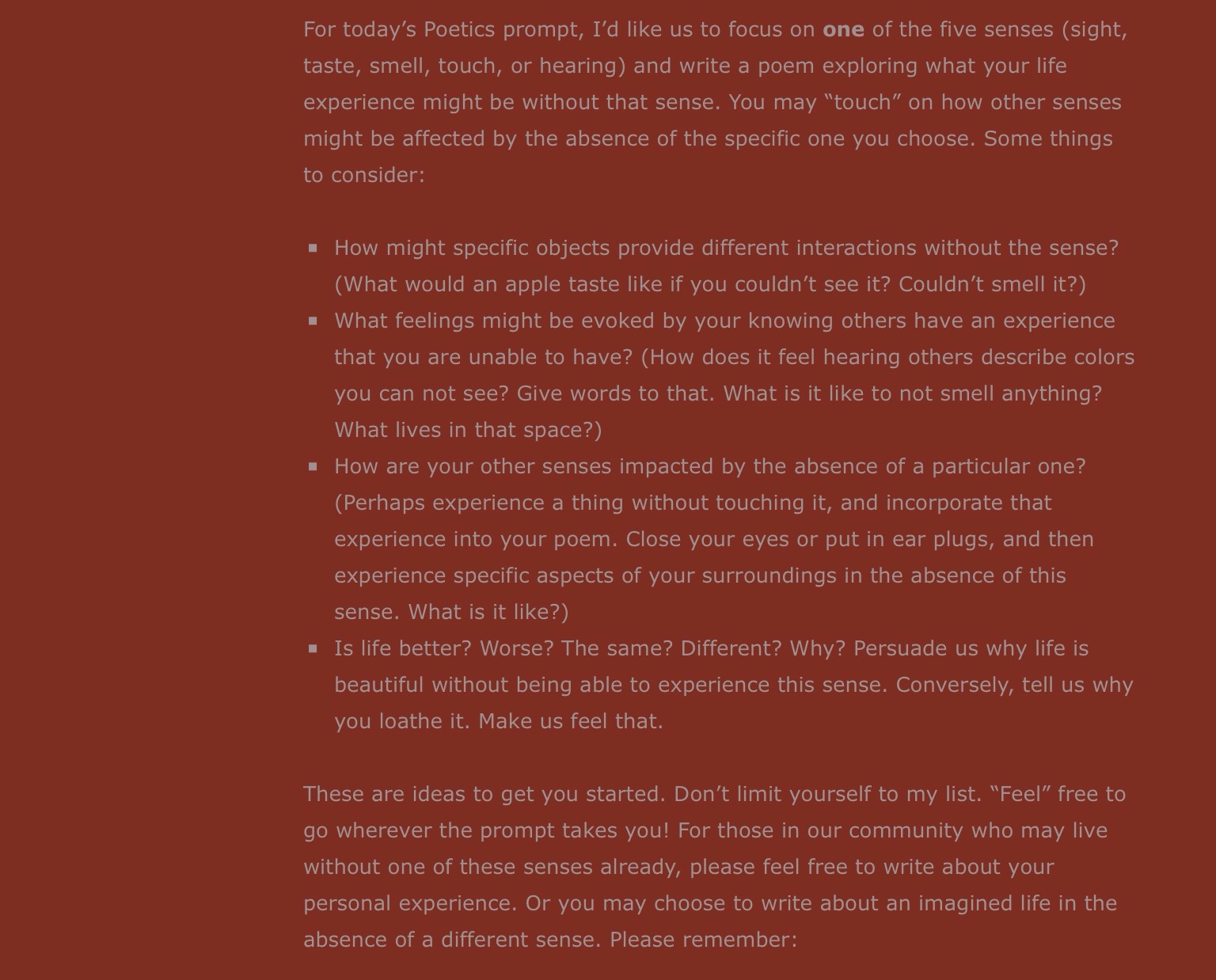 The relaxing, calm music was always there to remind Sara of her good friends who surrounded her in times of need. They had all belonged to the same choir, and the simple weekly meet turned into a peaceful time for each. Thankful for their personal touch, Sara was thinking how grateful she was for people who cared.