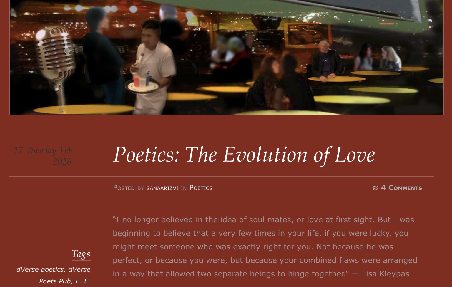 And of course we don’t all agree but what fun it is for me to sit and write. My poems are usually like my stories, off the cuff. I’m sure part of that is because I no longer have many conversations with others since I moved and everyone around me took jobs and time is short. The result is, I bare my soul here and enjoy reading the ideas from other bloggers. Might not say evolve but hopefully improve?😄