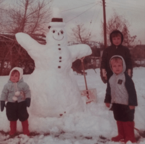 The picture below was taken in 1972 in Colorado. It was the biggest snowman we’d ever seen, and the first one the kids actually built. We had just moved from Texas and were surprised by a huge snowstorm. It was a delight for me since I hadn’t seen snow since 1966, and the kids had never seen it. It was even snowman building snow, what a treat!