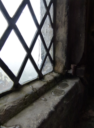 I’m standing here, tiptoes on the chair, looking out at another rainy day. It’s cloudy and difficult to see, but the drops coming in under the edges have me worried. If the water continues it shouldn’t cause any harm, for the window is quite a few feet above the floor. My bed of straw and linen should remain dry but just in case, I drop down from the window ledge and secure it in the farthest corner.