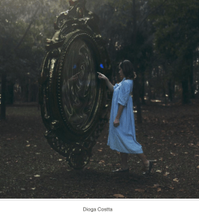 Ziobe was always curious, even being a teenager had not lessened her childhood obsession. Today she was fortunate to be walking in the nearby trees and heard what she thought was an unusual bird call. She followed the calling and it seemed to lead her to a very large mirror, propped up in the middle of nowhere. Ziobe couldn’t resist touching it, even though she knew from the stories of childhood books, it might not be a wise choice. Regardless of her inner warnings, she put her hand to the glass.