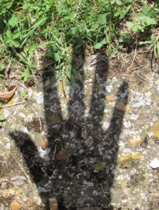 She stood staring at the shadow of her hand. “I see it clearly.” Moving her hand sideways and around, she watched the shadow on the grass. She swayed left and right, her image dancing on the ground.