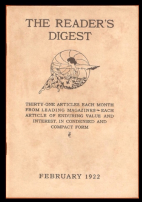 Remember the old Reader’s Digest magazines? I say old but looking on Google this is what I found. We used to get the Readers Digest when I was small and my dad’s favorite part was the “Laughter is the Best Medicine” section. This is the first issue cover: