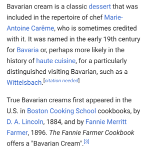 Putting My Feet in the Dirt 17 May 17, 2018May 17, 2018 by rugby843, posted in Uncategorized Bavarian cream dreams for me would only be a dream. Look at that recipe! May Writing Prompts Click to email a link to a friend (Opens in new window) Email Like Loading... Related