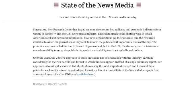 According to https://www.pewresearch.org/topics/state-of-the-news-media/: