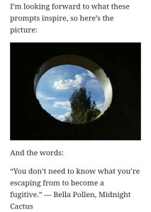 Huddling in my own space, tiny world, my sanctuary of sorts, a place I can choose relief from the reality of what I see through a gauged out hole, an opening to what may seem or may even be the real world, I wonder, could it be better than this?