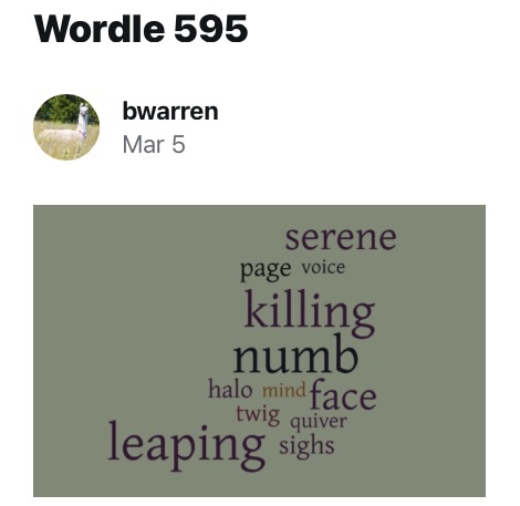 https://sundaywhirl.wordpress.com/2023/03/05/wordle-595/