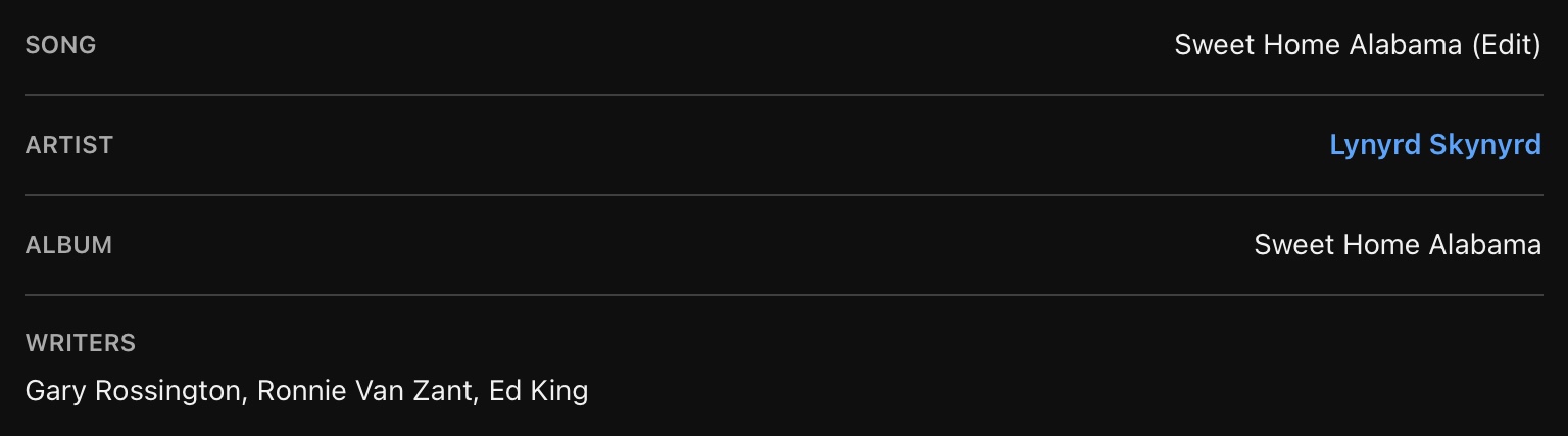 It was brought to my attention that “Sweet Home Chicago” should have been “Sweet Home Alabama” which also has a memorable intro, but no. Here it is, totally different genre.
