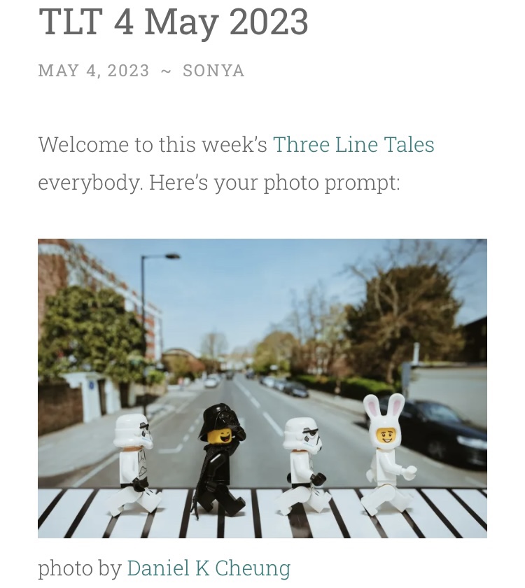 TLT/Only 100 Words May 4, 2023 by rugby843, posted in Uncategorized New version—classic Memories of Abbey Road The Beatles are missed https://sonyca.wordpress.com/2023/05/04/tlt-4-may-2023/ Email a link to a friend (Opens in new window) Email Like Loading... Related