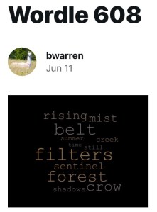 Shadows of trout in the forest creek cause only a mild ripple as the summer sun is still rising in the morning mist. A perfect time to fish he thinks, sitting quietly, and removes the bag of lures from his belt. Optimal time is short for the fisherman soon the sun filtering through the trees will be too bright overhead. A wise old crow serves as a warning sentinel when the sun reaches that point. It’s lucky the man came at dawn.