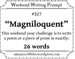 Sammiscribbles Weekend Writing Prompt September 4, 2023 by rugby843, posted in Uncategorized “Certainly not”, he said as he went.“I am always eloquent,my words describe exactly what I mean.An easier understood linguist never seen, certainly not magniloquent!” Weekend Writing Prompt #327 – Magniloquent Email a link to a friend (Opens in new window) Email Like Loading... Related