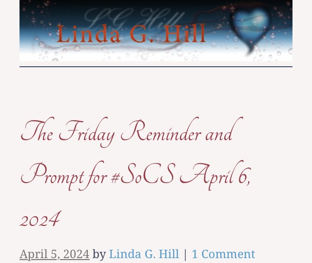 The Friday Reminder and Prompt for #SoCS April 6, 2024