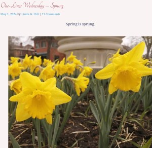 One Liner Wednesday May 1, 2024 by rugby843, posted in Uncategorized The May baskets on doors were hung Mayday is here and spring has sprung *** One-Liner Wednesday – Sprung Click to email a link to a friend (Opens in new window) Email Like Loading... Related