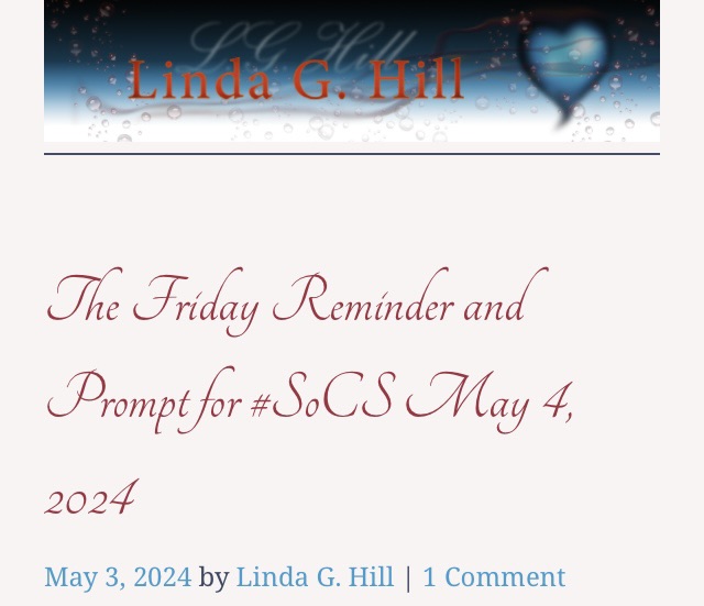 The Friday Reminder and Prompt for #SoCS May 4, 2024