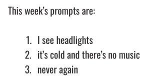 “I see headlights” were his last words. His mama always told him never to walk in the middle of the road, but did he listen? No! Never again will he ignore her advice, and I mean never! Now he’s laying in this makeshift bed he can’t get out of and it’s cold and there’s no music!