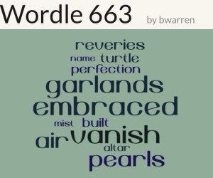 The mist in the air embraced the garlands on the altar making the small white flowers resemble pearls. The odd turtle back shape of the dais apparently was built by an amphibian lover and of course the entire space was bordering on the sea. A perfection of ocean reveries reverberated throughout and even the name was symbiotic, Vanishing View, because all in attendance knew the oceans were becoming so polluted that even a former place of worship would soon succumb to being uninhabitable.