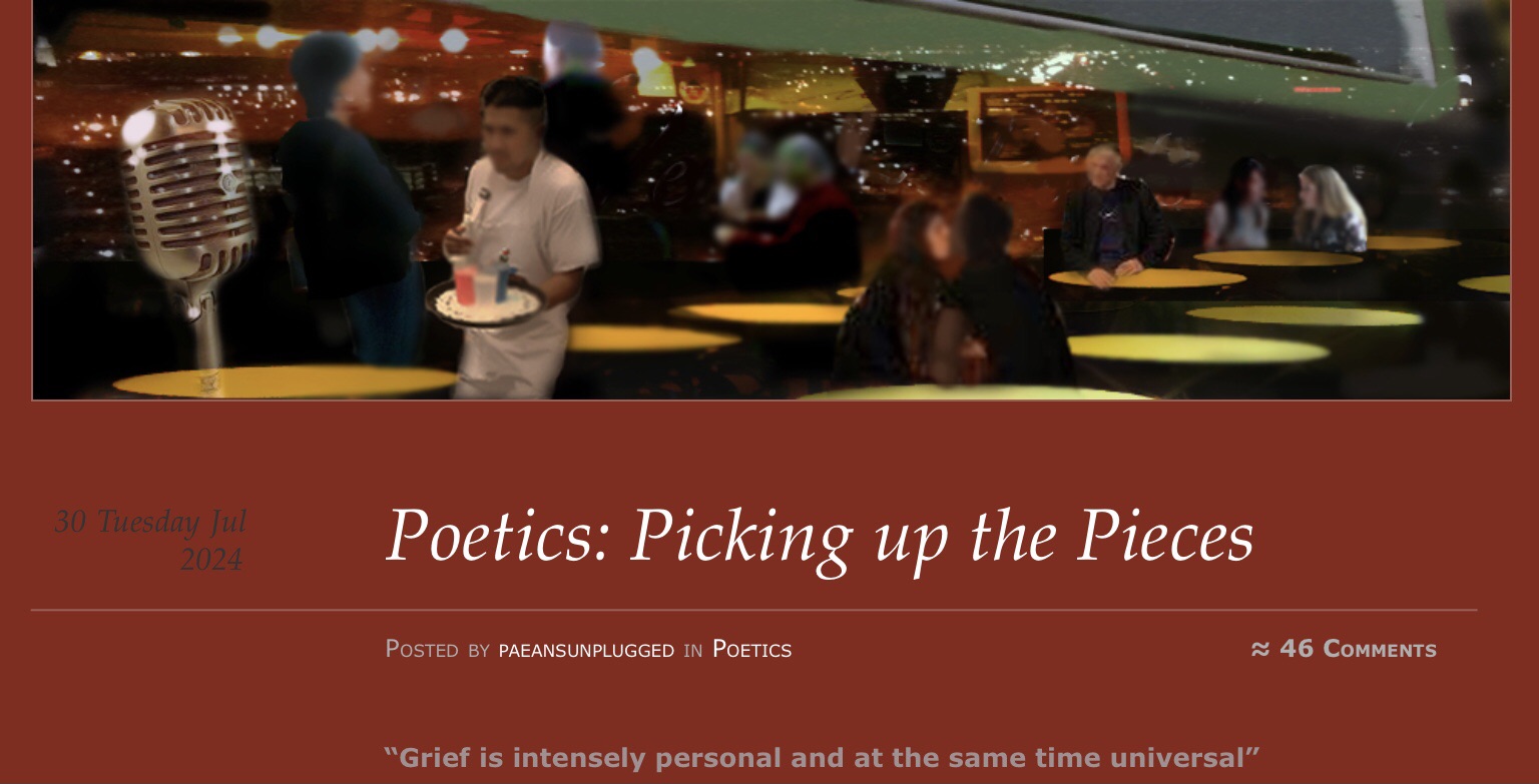 So, for today’s Poetics challenge, I would like you to write about grief (in general or personal). If that is something you don’t want to share, you can write about healing, dealing with loss or the general state of our world that brings grief to you. If you are new to dVerse, please write a poem of any form, any length on your blog.