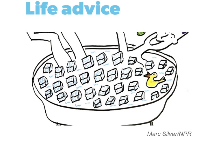 🧊 Put a bottle of frozen water on your lap, put your feet in a large