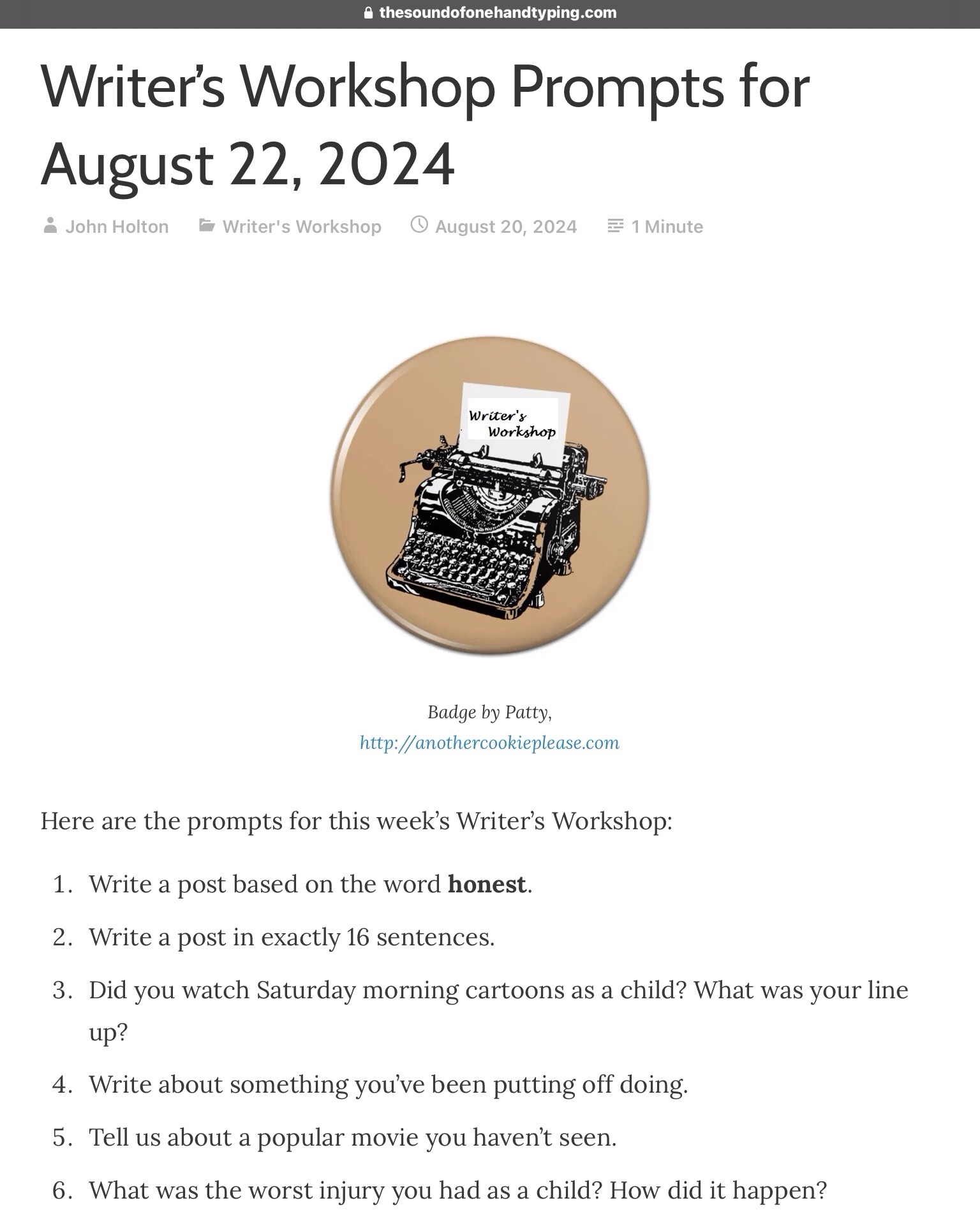 Writer’s Workshop Prompts for August 22, 2024