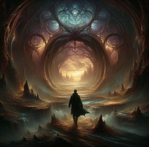 Into the facade he walks