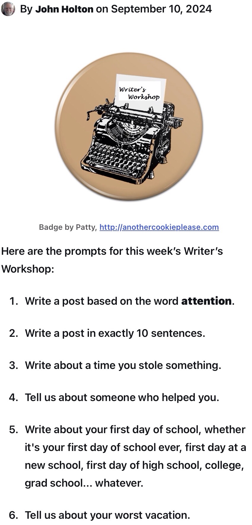 Writer’s Workshop Prompts for September 12, 2024