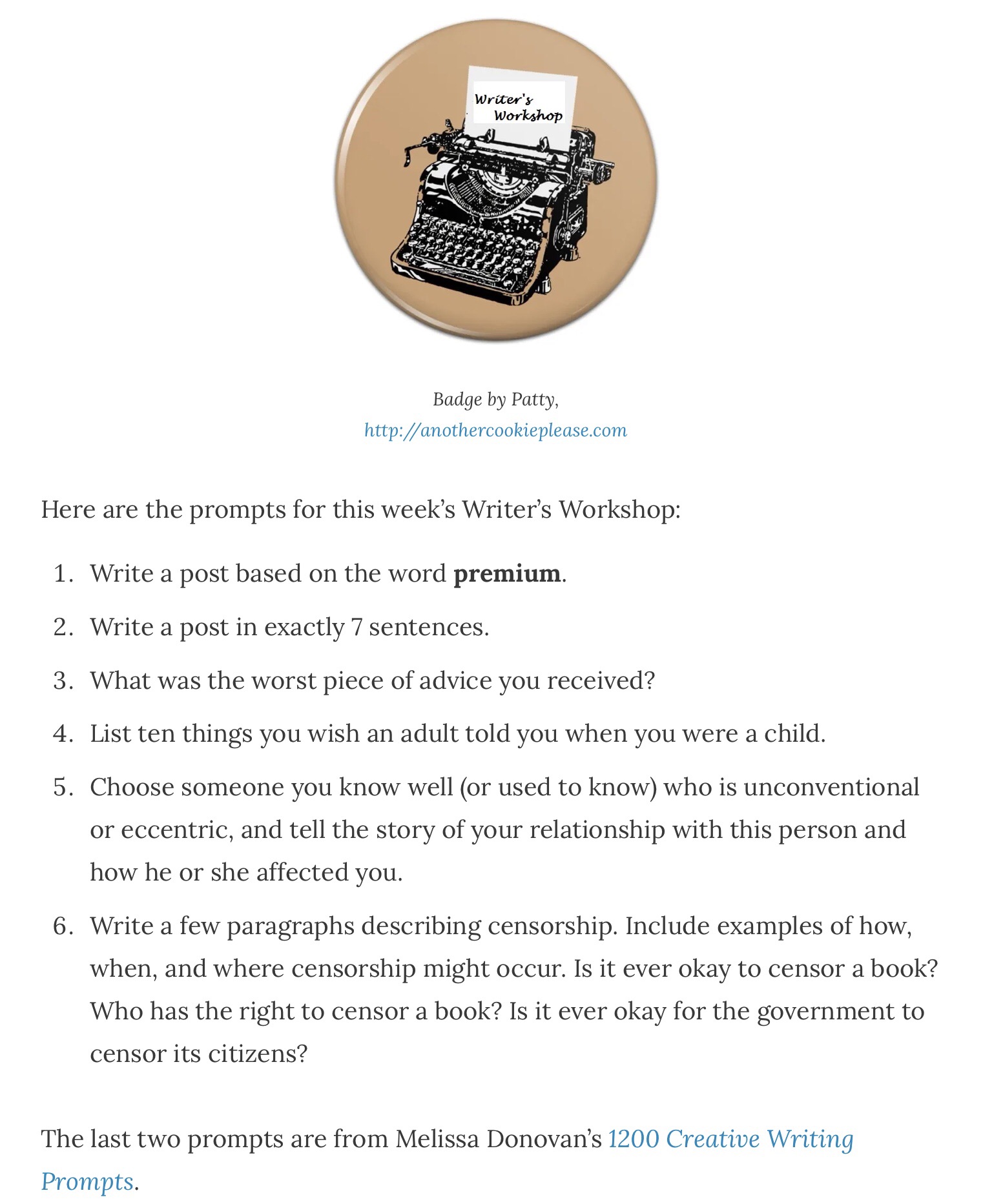 This Week’s Writer’s Workshop Prompts – September 24, 2024