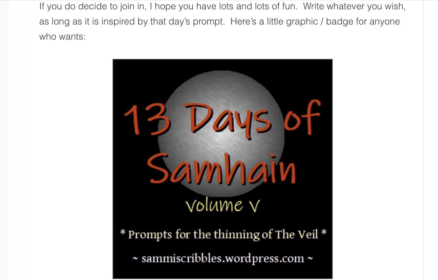 13 Days of Samhain (volume v) – A Horror / Halloween Writing Prompt Challenge
