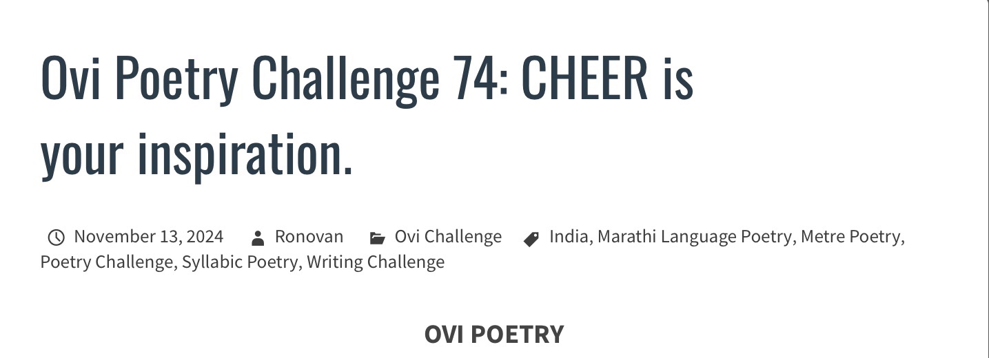Ovi Poetry Challenge 74: CHEER is your inspiration.
