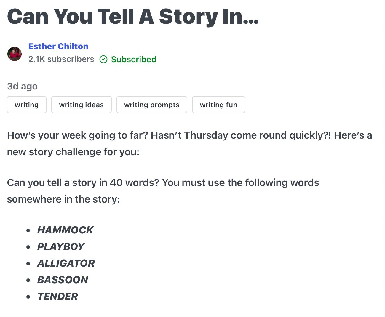 5 thoughts on “Can You Tell a Story in 40?