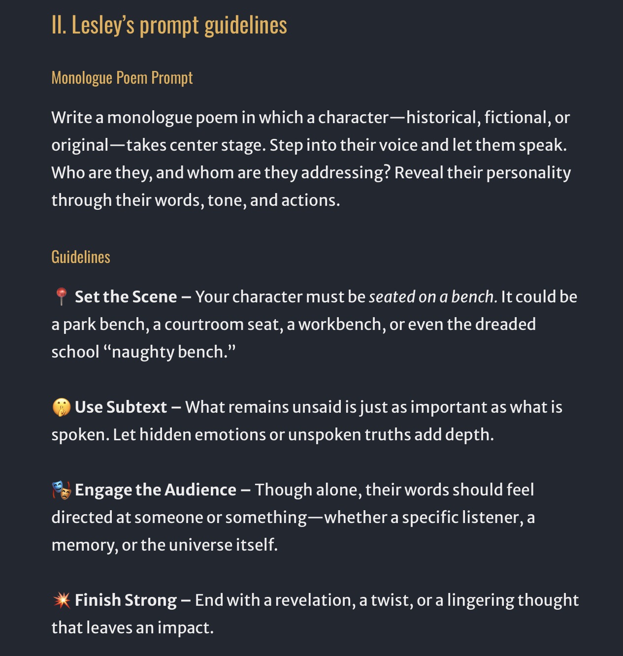 Set in an empty office, the voice of your protagonist, the apology, the Constitution trampled underfoot, the call for action, the depth of subtext—all make for a superb monologue and a wonderful response to my prompt. Thank you, Cheryl. 👏