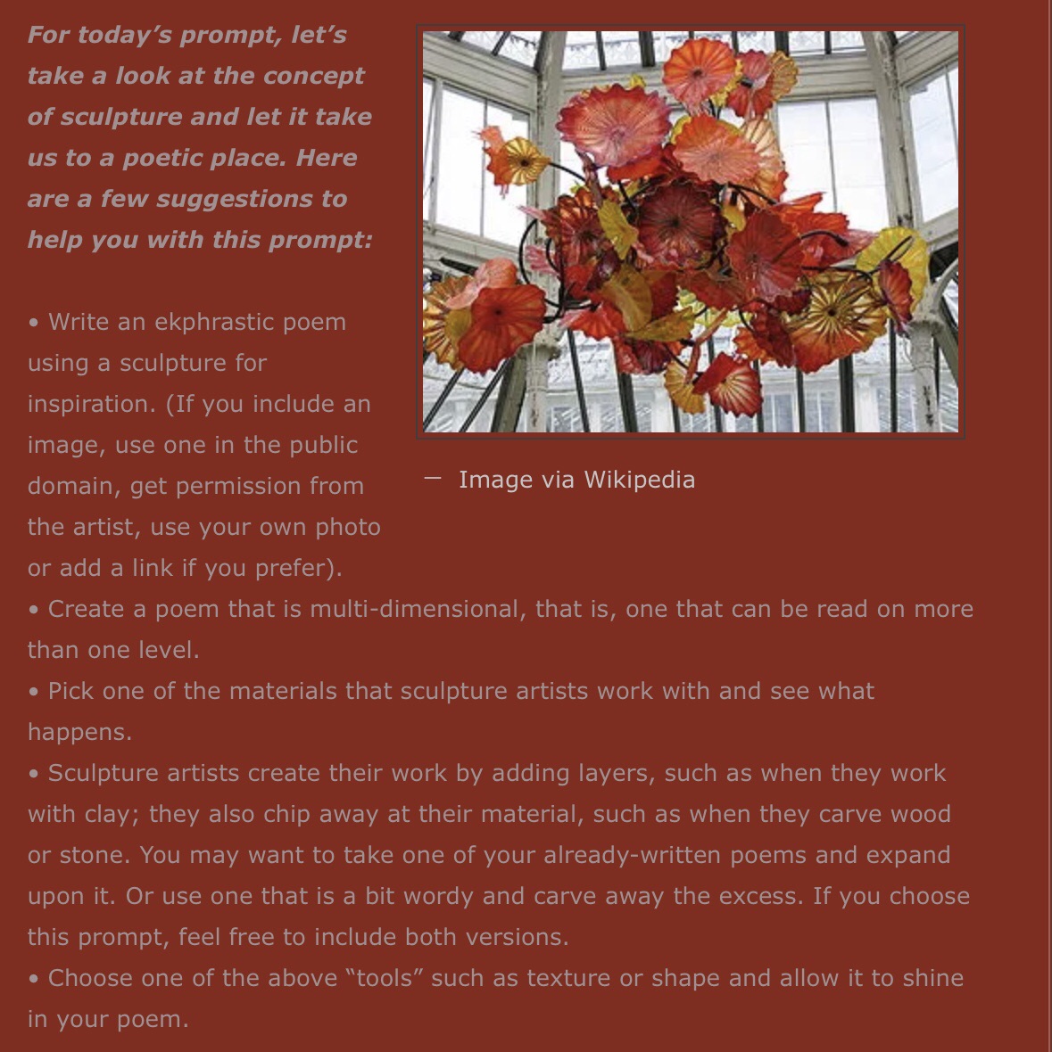 Being geeked with the busts made out of so many materials, in so many styles, with so many ways of communicating “issues tied to identity, mortality, power, and history,” I thought it would make a wonderful prompt. Searching through the dVerse archives, I found this most excellent prompt by Victoria C. Slotto from 2012, titled, “Sculpting a Poem.” After reading it, I realized I didn’t need to reinvent the wheel. Thank you, Victoria! I encourage you to read her prompt for guidance today.