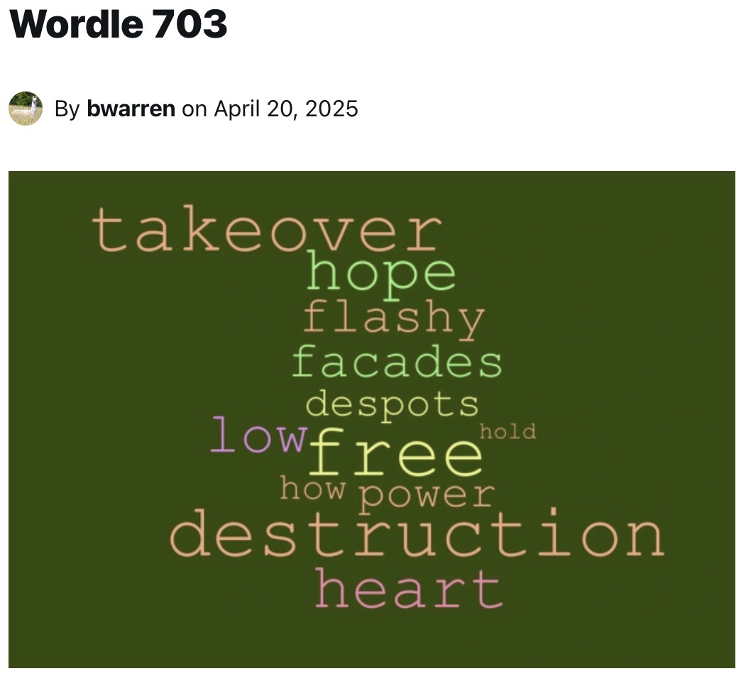 The strength of my heart is on hold as the powerful takeover of despots seems to flow freely now. How the destruction caused by low individuals holds us captive with their flashy facades is always a mystery to me, but it’s nothing new in our history. Usually there is a turnaround – let’s hope it doesn’t come too late.
