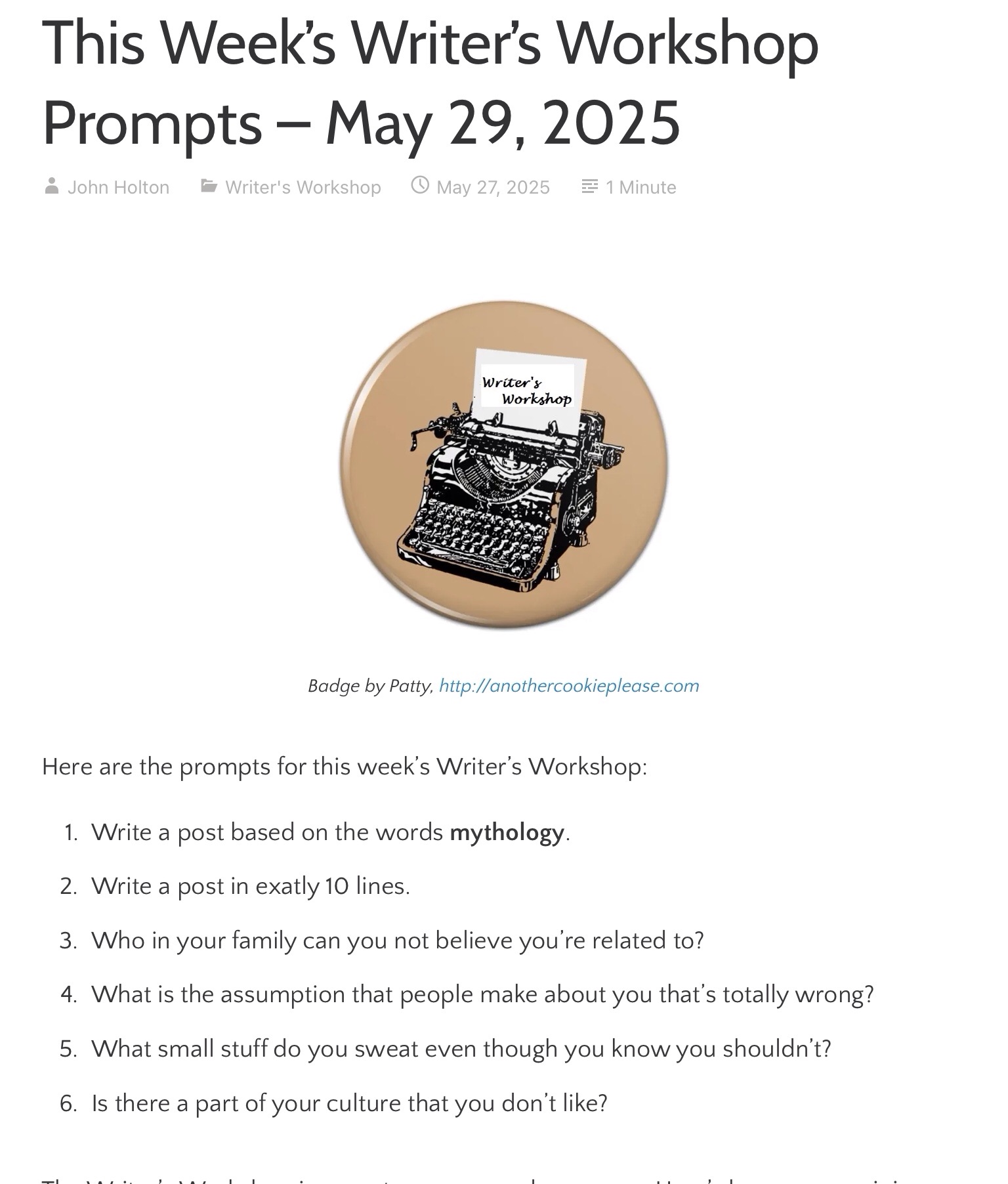 This Week’s Writer’s Workshop Prompts – May 29, 2025