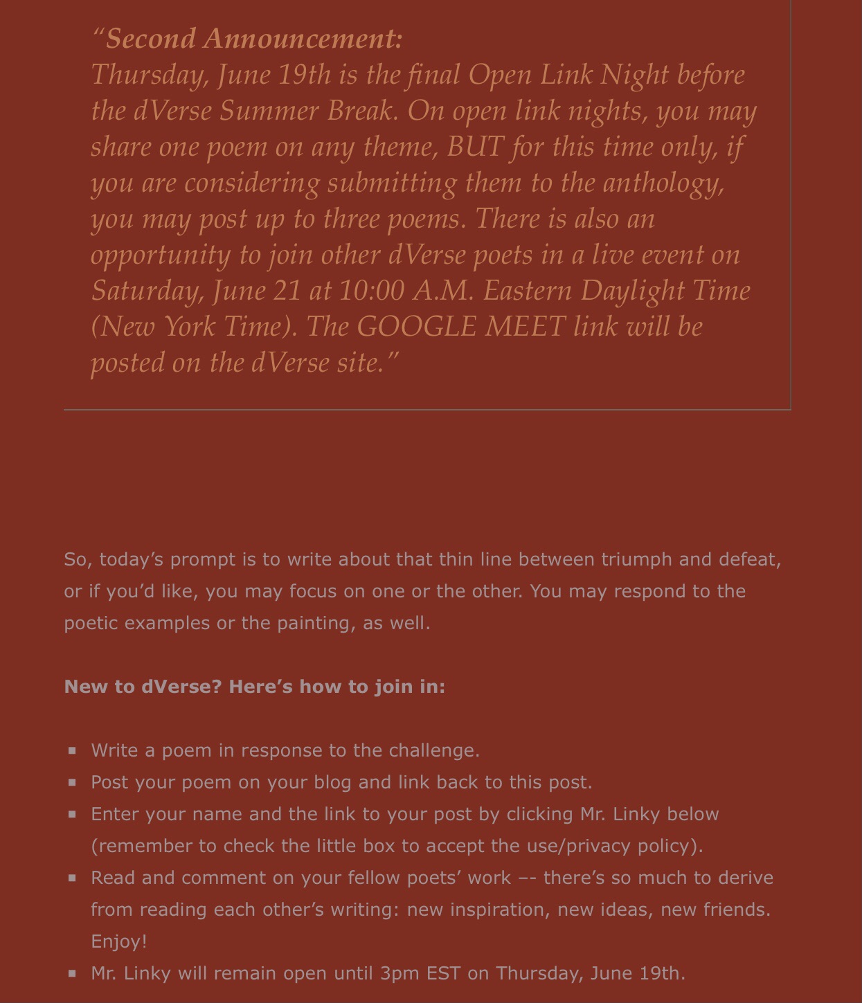 Poetics: Triumph and Defeat