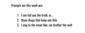 “I sing to the moon like my brother the wolf, but as my friends have told me, ‘can tell you the truth, or…’ and they always tell me their truth – I have no singing voice. I could offer a few truths of my own, especially to Sophie, such as ‘those drugs that keep you thin are poisoning your body, thus the weight loss. Do you truly want to go to your grave looking like Twiggy, or have a healthy rest of your life with us, your friends?’”