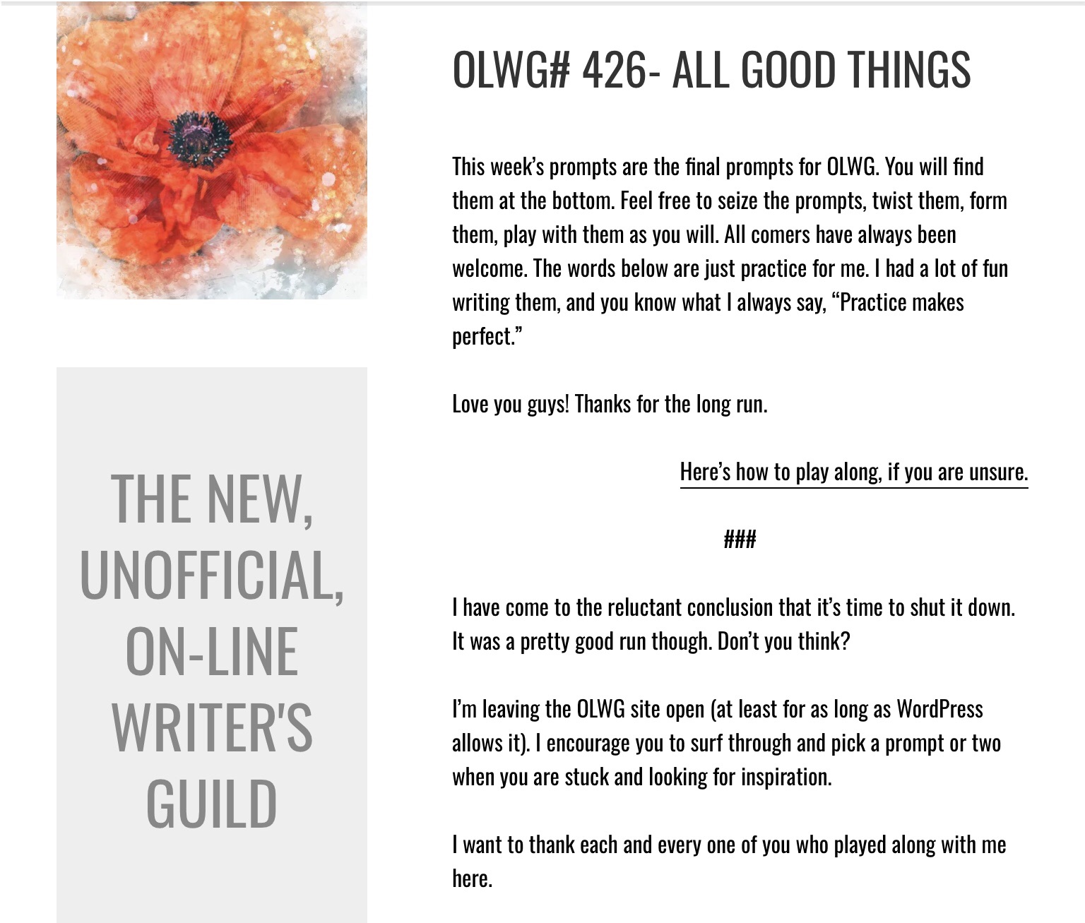 I decided to do the first prompts, I’m sad to think you are leaving this great site. I am trying a continuing story for the first time.