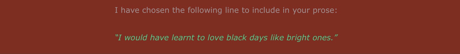 “I would have learnt to love black days like bright ones.” Spoken as he lay on his deathbed, Joseph held his hand out to his wife. “My dive into depression has hurt all of you”, gesturing to his children that were present. His oldest son, Michael refused to join them as they said goodbye to their father. Joseph had been sick for a while and they all knew his death would be coming soon. They remembered seeing him at his worst on those black days, but were unable to lift him back into a brighter place. His illness had controlled the family life in hurtful ways. Since scientists revealed depression as an illness, he was forgiven. The physical illness is what is taking him away now.