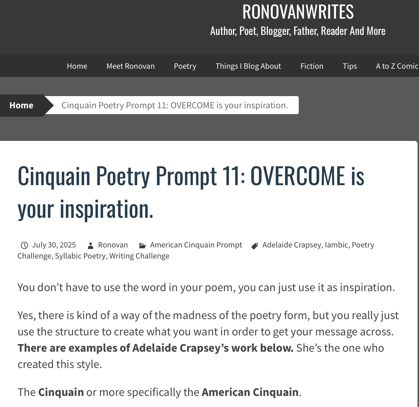 Cinquain Poetry Prompt 11: OVERCOME is your inspiration.