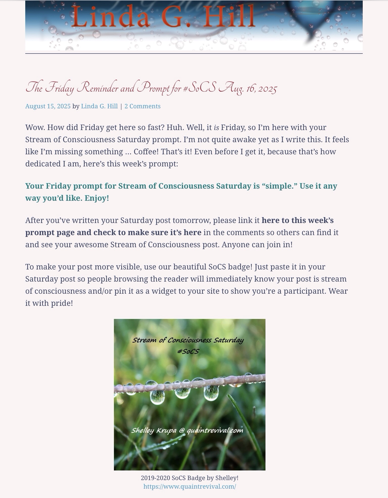 The Friday Reminder and Prompt for #SoCS Aug. 16, 2025