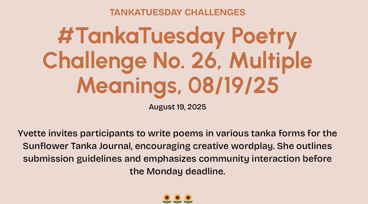 #TankaTuesday Poetry Challenge No. 26, Multiple Meanings, 08/19/25