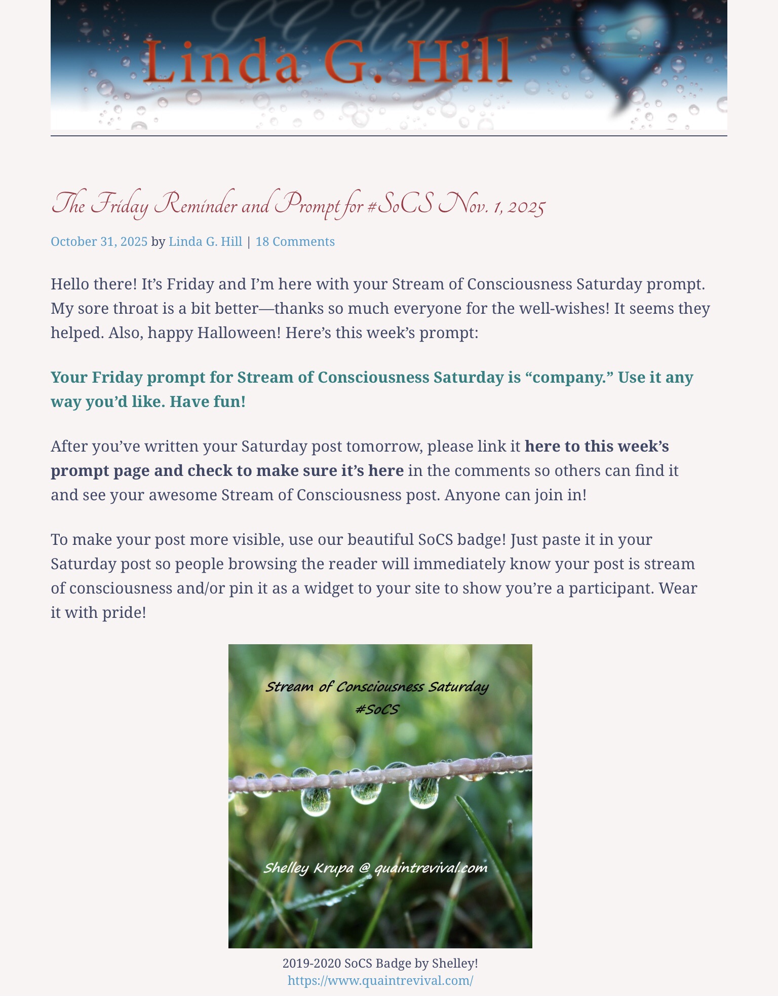 The Friday Reminder and Prompt for #SoCS Nov. 1, 2025