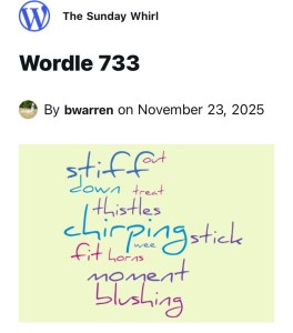 A stiff stick with thorns is all that’s left of the beautiful blushing rose bush, a garden beauty. A wee chirping can be heard as a bluebird stops to rest on the bare branches. Coming out for a moment to the garden, I lazily fit myself in the Adirondack chair I painted pink to match the thistle plant. I love the Scottish symbol flower and never cut it down as many gardeners do. I consider it a summer treat to enjoy on warmer days.