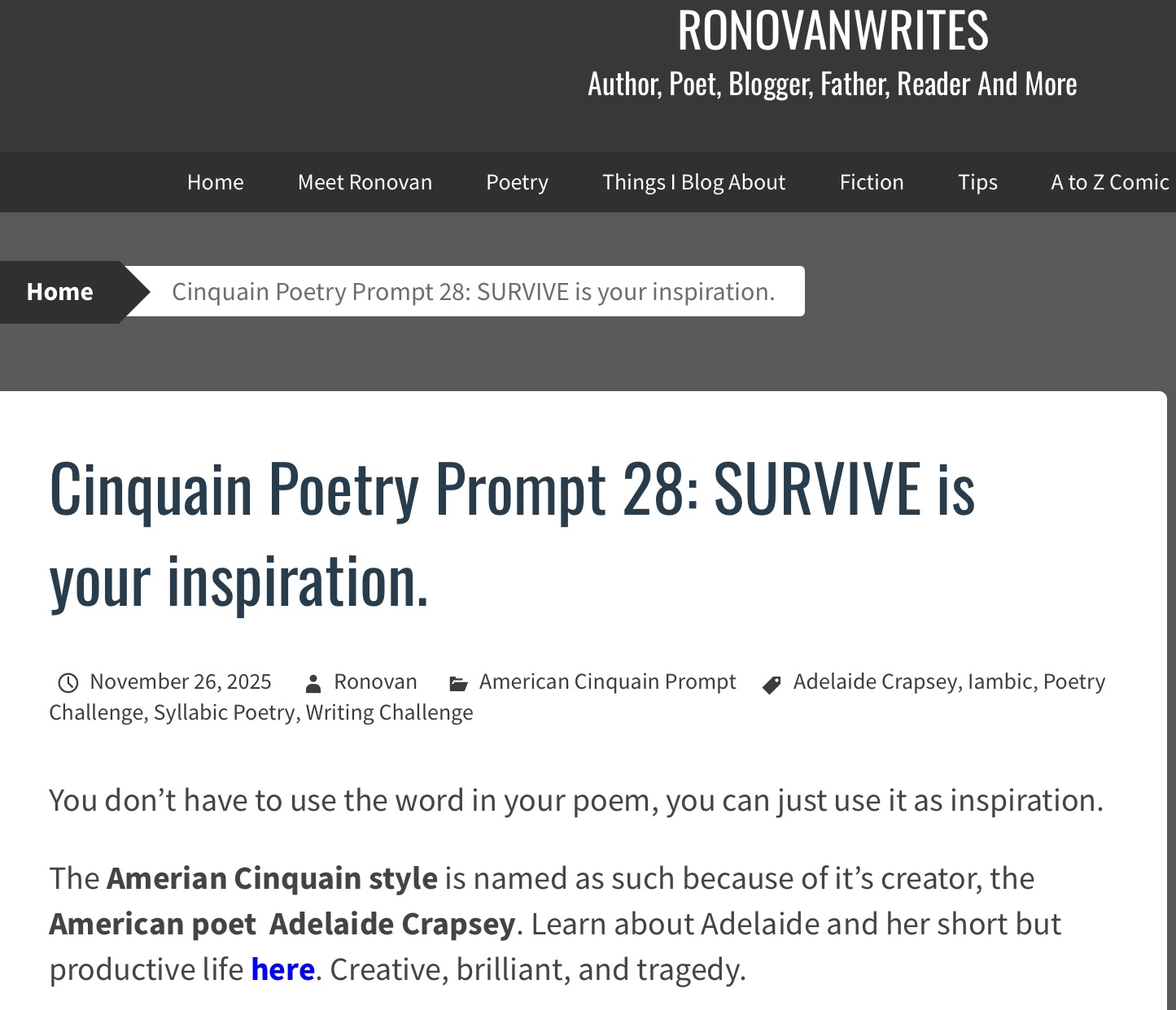 Cinquain Poetry Prompt 28: SURVIVE is your inspiration.