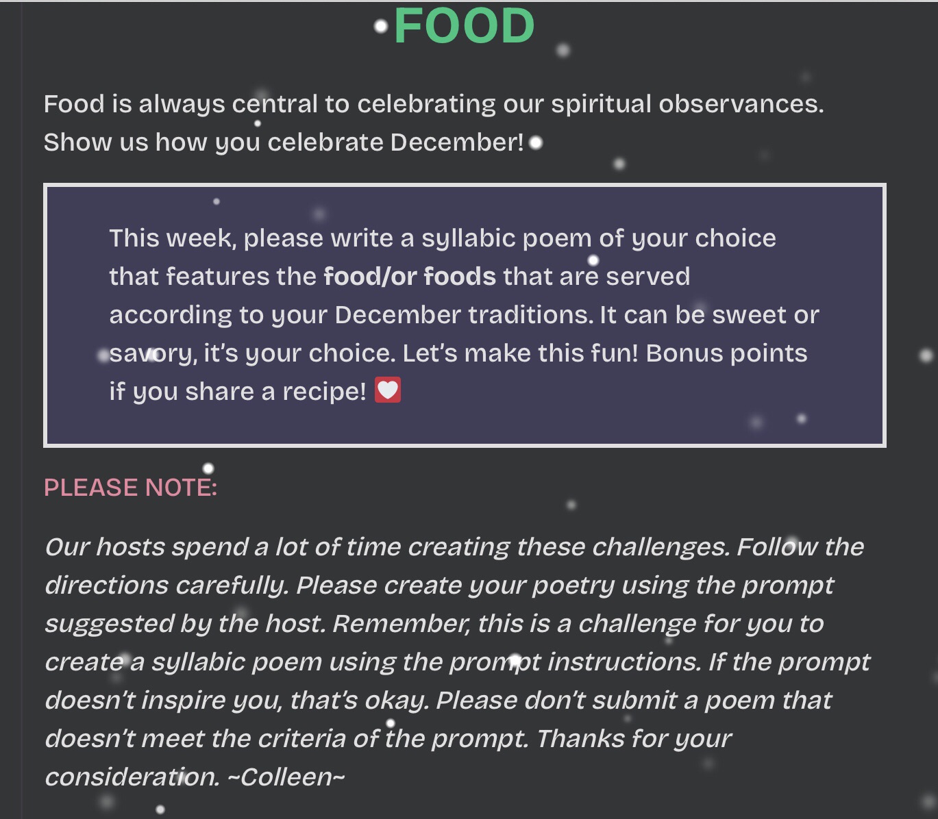 #TankaTuesday Poetry Challenge No. 41, December Foods, 12/2/2025